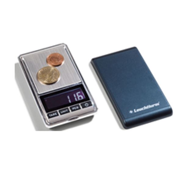 Bilancia digitale per monete Libra 500, nel pratico formato tascabile con dispay LCD retroilluminato con spegnimento automatico, 6 diverse unità di peso, funzione tara e ampio piano di pesatura in acciaio inox, coperchio amovibile, funzione di calcolatrice, campo di pesatura da 0,1 a 500 grammi, dimensioni esterne 64x116x17. fornita di batterie.