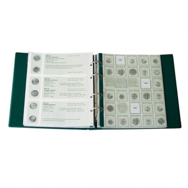Album lusso con custodia per la raccolta di tutte le monete della Lira italiana, coniate per la circolazione ed emesse dal 1946 al 2001. Tutte le monete sono riprodotte fotograficamente fronte e retro, corredate ognuna da tante informazioni quali, dimensioni, peso, composizione metallica, incisore, scultore e decreti ministeriali il tutto arricchito da brevi notizie storiche. Pagine a taschine con patella a sormonto in cristal trasparente, prodotte con materiale HHt più rigido per sostenere le monete.