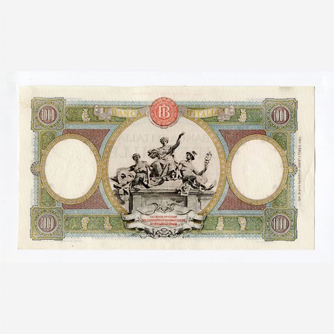 Regno d'Italia e Repubblica Sociale Italiana, banconota da 1000 lire Regine del Mare del 08-10-1943, firme Azzolini-Urbini, stampata da officine della Banca d'Italia, Aquila, contrassegno di Stato al fronte Testina d'Italia e al retro monogramma B.I. Nella parte frontale della banconota la raffigurazione di due figure femminili sedute al centro poggianti sugli stemmi delle città di Venezia e Genova. Al retro, nel medaglione centrale, riproduzione del gruppo scultoreo un tempo ornante la facciata di Palazzo kock, sede della Banca d'Italia in Roma. Filigrana: nel medaglione destro testa di Cristoforo Colombo e nel sinistro testa dell'Italia turrita.