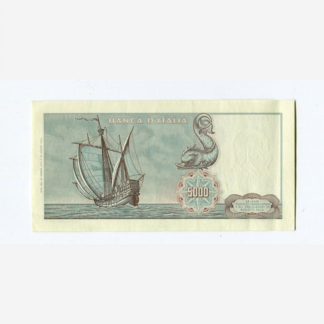 Repubblica Italiana, banconota da 5.000 lire Colombo 1° tipo, matrice medusa, anno 20 gennaio 1970.