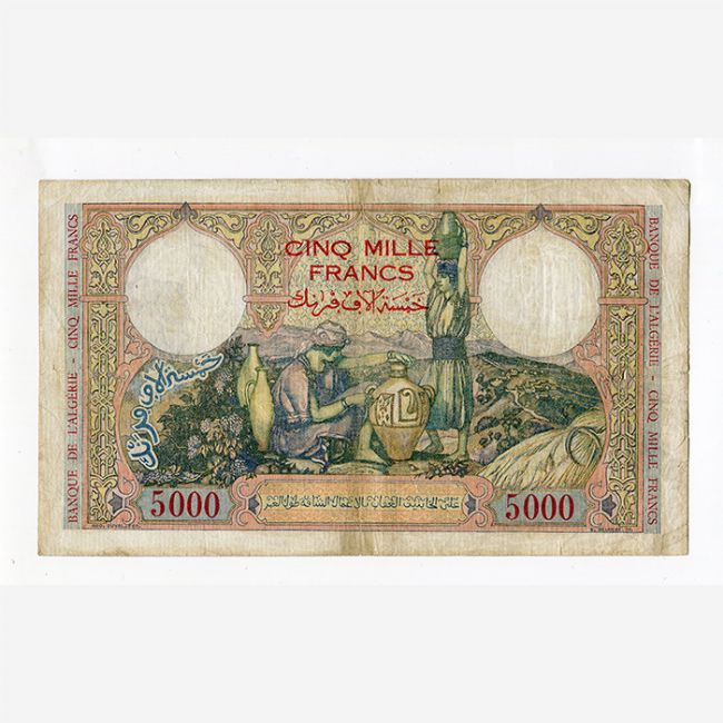 Algeria, banconota da 5000 franchi, banca di Algeria 15-7-1942.
