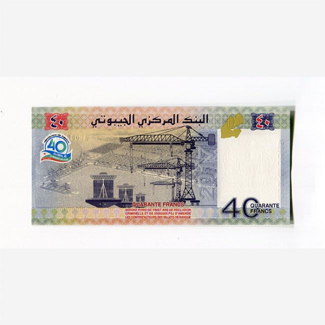 Banca Centrale del Djibouti, banconota da 40 franchi anno 2017 per celebrare il 40° anniversario dell'indipendenza. Pik n.46
