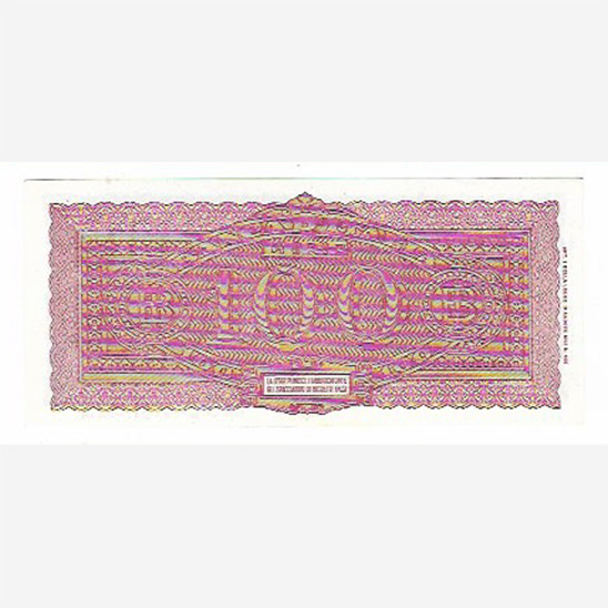 Luogotenenza, banconota da 100 lire Italia Turrita del 10-12-1944. Al dritto della banconota testa dell'Italia Turrita con stelle all'interno dell'ovale, al rovescio cifra 100 tra due monogrammi "B.I.". Firme: Introna-Urbini, filigrana: cifra 100 ripetuta 8 volte in tre righe orizzontali, contrassegni di Stato: al fronte della banconota la Testina d'Italia, al retro: monogramma "B.I", stampata dall'Istituto Poligrafico dello Stato, Roma. Fuori corso dal 30 giugno 1953.