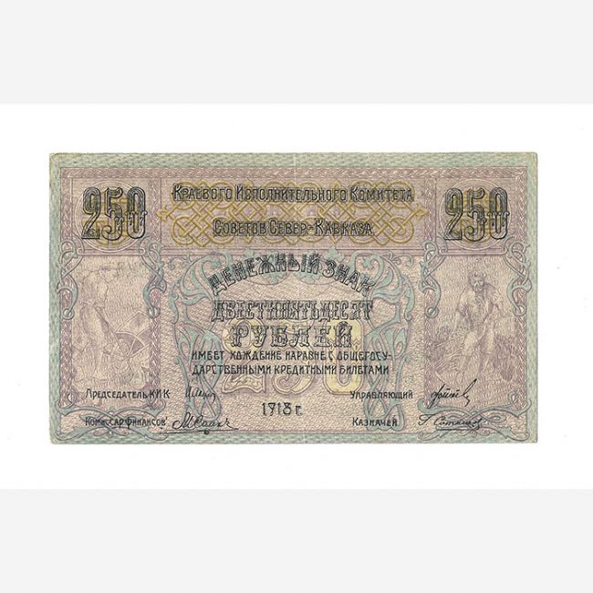 Banconote mondiali, banconota da 250 Rubli della Russia North Caucaso del 1918. S.459