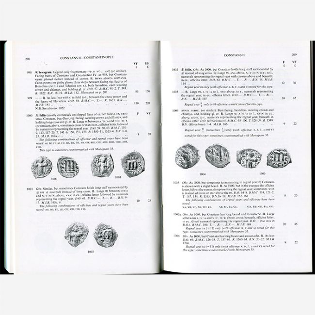 Bizantine Coins and their values, catalogo per la catalogazione e valutazione delle monete Bizantine con prezzi, illustrazioni, foto e note storiche, seconda edizione del 1987 rivista e ampliata. L'impero bizantino è durato per quasi mille anni dopo la caduta dell'Impero Romano d'occidente, di cultura prevalentemente greca con il nome dell'Impero Bizantino gli studiosi moderni e contemporanei indicano l'Impero Romano d'Oriente separatosi dalla parte occidentale, di cultura quasi esclusivamente latina. Il periodo coperto da questo catalogo va dal regno di Anastasio I (491-518) fino alla cattura di Costantinopoli da parte dei Turchi nel 1453. Nel catalogo troverete catalogate, illustrate e prezzate più di 2250 monete in oro argento e bronzo, più di 600 foto, inoltre l'introduzione del catalogo indica i vari tipi delle zecche, con denominazione e date, e le iscrizioni trovate nelle monete bizantine includendo 7 mappe e 1 tavola di monogrammi.
