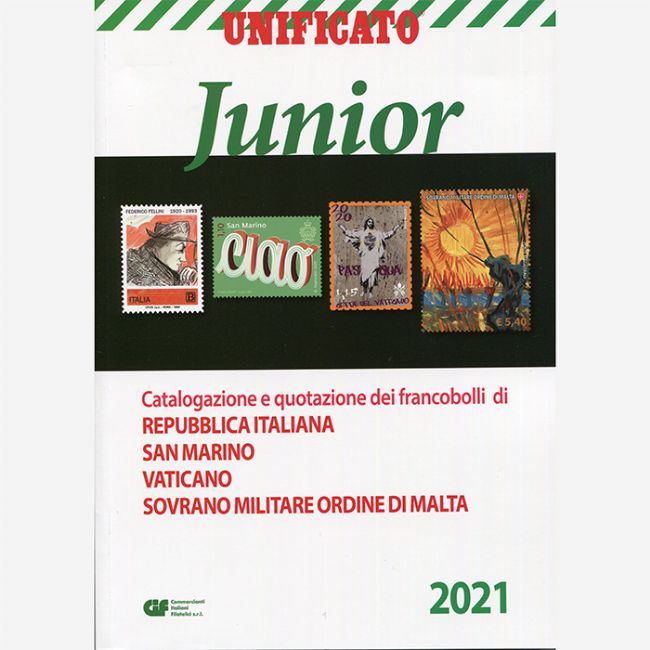 All'interno del catalogo troverete foto a colori, note caratteristiche, accenni storici, quotazioni e valutazione di tutti i francobolli della Repubblica Italiana, Repubblica di San Marino, Città del Vaticano e del Sovrano Militare Ordine di Malta (SMOM), edizione Junior anno 2021.
