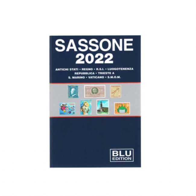 Catalogo dei francobolli d'Italia e dei paesi Italiani, Sassone Blu 2022 per la consultazione e valutazione dei francobolli. All'interno del catalogo troverete foto a colori, note caratteristiche, accenni storici e valutazione di tutti i francobolli di: Antichi Stati Italiani - Repubblica Sociali Italiana - Luogotenenza - Repubblica Italiana - Trieste A - Repubblica di San Marino - Città del Vaticano - Sovrano Militare Ordine di Malta.