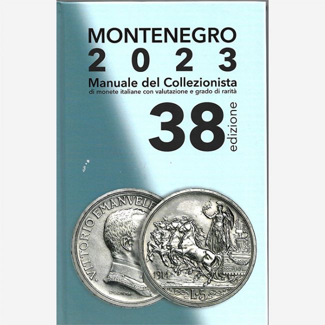 Numismatica e Monete, Manuale del collezionista, catalogo per la valutazione e consultazione delle monete, Montenegro edizione 38 anno 2023. Collector's Handbook of italian coins. All'interno del catalogo foto a colori, accenni storici, note caratteristiche e valutazione dal 700 ai giorni nostri di ogni singola moneta o serie di monete complete di: Piemonte - Regno di Sardegna - Regno d'Italia e Colonie - Repubblica Italiana - Liguria - Lombardia - Veneto - Emilia - Ducato di Parma, Piacenza e Guastalla - Repubblica di San Marino - Repubblica Romana - Stato Pontificio - Città del Vaticano - Granducato di Toscana - Regno di Napoli - Regno delle due Sicilie - Regno di Sicilia - Zecca di Palermo - Medaglie Papali Annuali.