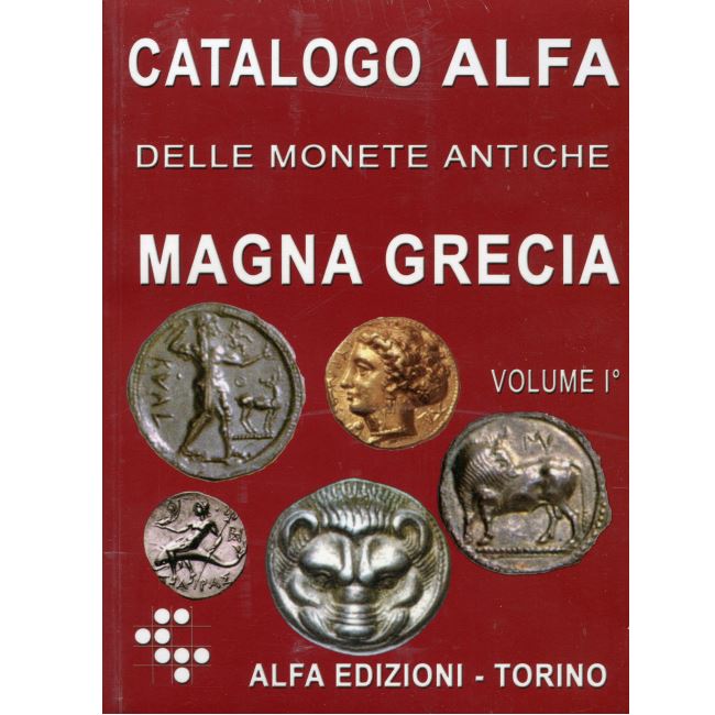 Catalogo edizione Alfa per le monete antiche della Magna Grecia volume I, completo di foto storia e prezzo delle varie monete in oro argento e bronzo. Per la Magna Grecia si intende parte dell'Italia meridionale, costituita soprattutto dalla costa ionica, dove a partire dagli ulltimi decenni del se. VIII A.C. si sviluppò la colonizzazione greca.