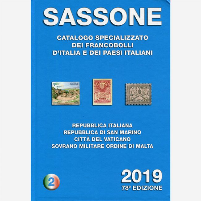 Sassone edizione 2019, volume 1 e 2, cataloghi specializzati dei francobolli d'Italia e dei paesi Italiani. All'interno dei cataloghi foto a colori di tutti i francobolli con accenni storici, spiegazione, data di emissione e dati caratteristici con relativo prezzo per il singolo francobollo o della serie completa. Il primo volume contiene: Antichi Stati Italiani, Regno d'Italia, Repubblica Sociale Italiana, Luogotenenza, Trieste A, Trieste B, Emissioni Locali, Corpo Polacco, Occupazioni uffici postali all'estero, Colonie Italiane. Il secondo volume contiene: Repubblica Italiana, Repubblica di San Marino, Città del Vaticano, Sovrano Militare Ordine di Malta.