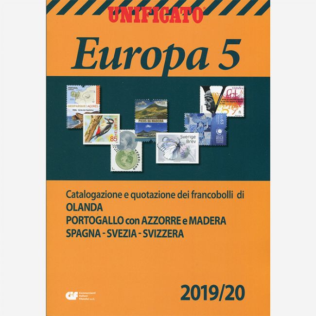 Catalogo per francobolli Europa volume 5 edizione 2019-2020, indispensabile per la catalogazione e quotazione dei francobolli di: OLANDA, PORTOGALLO con AZZORRE E MADERA, SPAGNA, SVEZIA, SVIZZERA. Il catalogo riporta tutte le immagini a colori delle emissione filateliche con informazioni e prezzi dei francobolli nuovi e usati.