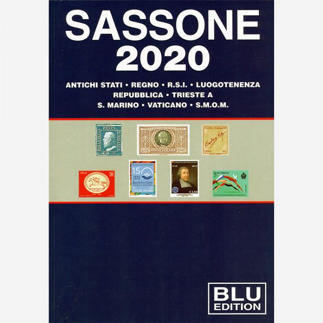 Catalogo dei francobolli d'Italia e dei paesi Italiani, Sassone Blu 2020 per la consultazione e valutazione dei francobolli. All'interno del catalogo troverete foto a colori, note caratteristiche, accenni storici e valutazione di tutti i francobolli di: Antichi Stati Italiani - Repubblica Sociali Italiana - Luogotenenza - Repubblica Italiana - Trieste A Repubblica di San Marino - Città del Vaticano - Sovrano Militare Ordine di Malta.