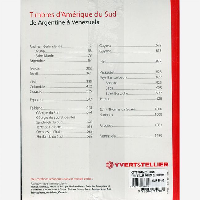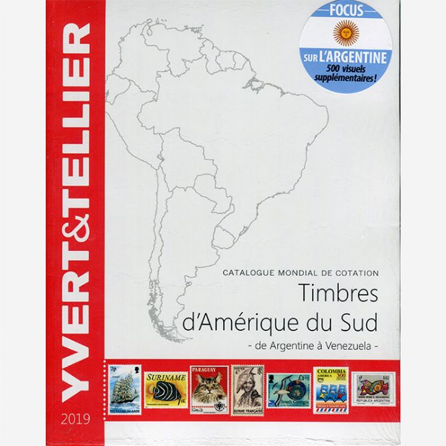 Catalogo mondiale Yvert&Telier edizione anno 2019 per i francobolli dell'America del Sud, dall'Argentina al Venezuela. Indispensabile per la valutazione e catalogazione con foto a colori, prezzi e informazioni di ogni singola emissione filatelica.