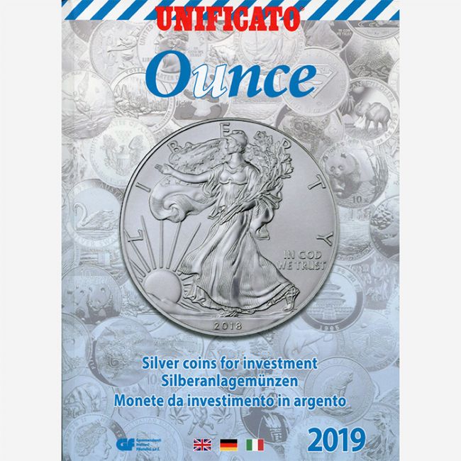 La prima edizione del nuovo catalogo - UNIFICATO - anno 2019 delle ONCE d'Argento puro al 99,9% , classifica e quota in un unico volume tutte le oncie d'argento (escluse quelle proof) finora prodotte dal 1982 al 2018, da tutti i paesi del mondo, da Andorra a Zambia. All'interno del catalogo troverete tutte le immagini di ogni moneta oncia d'argento con dati specifiche e testi descrittivi.
