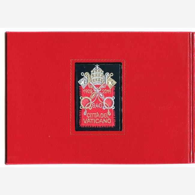 Ufficio Filatelico della Città del Vaticano, anno 2019, emissione filatelica di un elegante folder con all'interno due francobolli, uno usato su busta primo giorno con timbro 11 febbraio 1929-2019 e uno nuovo, a commemorare il 90° anniversario dei Patti Lateranensi e della fondazione dello Stato della Città del Vaticano. L'11 febbraio 1929, nel Salone d'onore del Palazzo del Laterano, durante il Pontificato di papa Pio XI, venivano firmati i Patti Lateranensi, stipulati tra la Santa Sede e l'Italia, con i quali per la prima volta dall'Unità d'Italia furono stabilite regolari relazioni bilaterali tra Italia e Santa Sede.