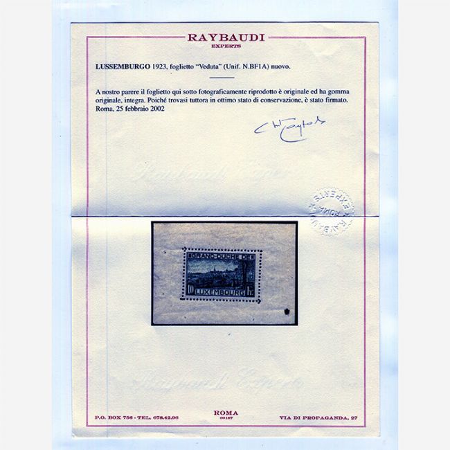 Il foglietto è correlato di certificato di autenticità Perito Raybaudi.