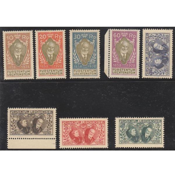 Serie di francobolli emessa dal Liechtenstein nel 1928, a commemorare il 70° anniversario dell'avvento del Principe Giovanni. Serie di francobolli composta da 8 valori. Serie di francobolli nuova.