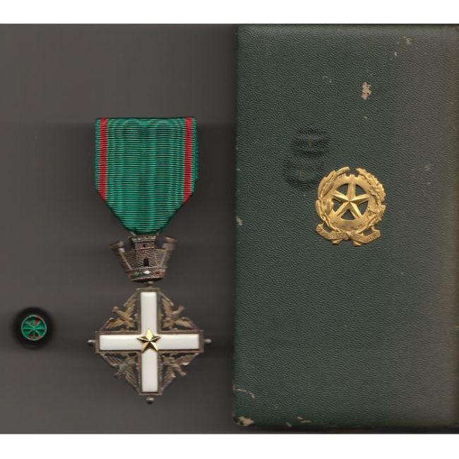 Medaglia Ordine al merito della Repubblica italiana con scatola e piccolo occhiello da giacca.