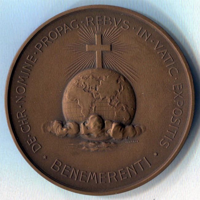 PIO XI medaglia in Bronzo ai Benemerenti Esposizione Missionaria 1925