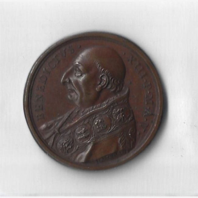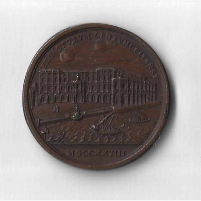 Medaglia Papale, Roma, Benedetto XIII (1724-1730). Medaglia in bronzo, anno V (29 giugno 1728), a commemorazione della Sistemazione della piazza della darsena e costruzione del penitenziario di Civitavecchia. 23 Gr. - 36,10 mm.