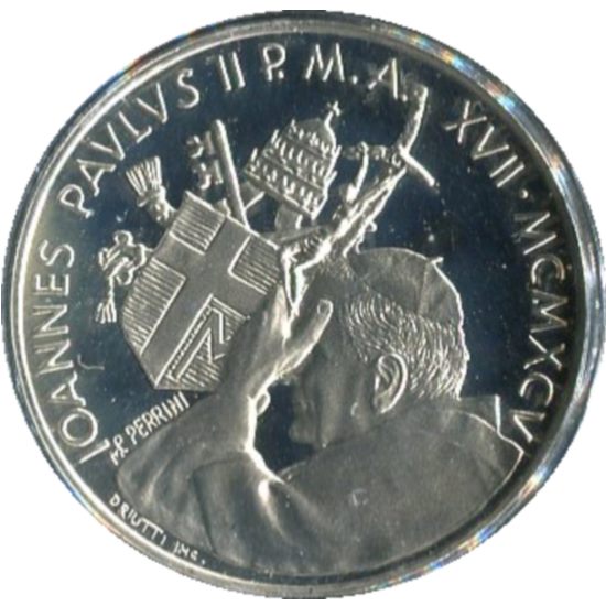 Città del Vaticano, Giovanni Paolo II, 500 lire in argento versione fondo specchio (proof) anno 1995, Anno Internazionele della Donna, nel contorno in rilievo INTERNATIONALIS ANNUS MULIERI DICATUS, moneta confezionata in astuccio.