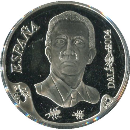 Moneta commemorativa "Leda Atomica" da 10 euro in argento .925 in versione fondo spechhio -proof- coniata dalla Spagna anno 2004 in onore di Salvador Dalì, al dritto della moneta il ritratto del Maestro e al rovescio immagine dell'opera. Moneta confezionata in astuccio.