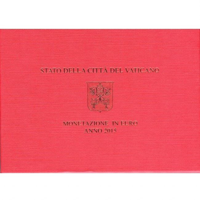 Emissione numismatica della Città del Vaticano della serie di monete euro in versione fondo specchio (PROOF) anno 2015. La serie è composta dalle 8 monete classiche recanti la raffigurazione di sua santità Papa Francesco e la scritta Città del Vaticano e le 12 stelle e la moneta in Oro da 50 Euro raffigurante il Papa in preghiera davanti alla Madonna di Fatima, intorno la scritta FRANCISCVS PP. ANNO MMXV.