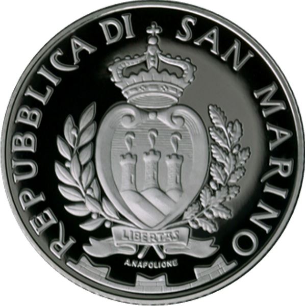 Moneta da 5 euro in argento .925% in versione fondo specchio (proof) emessa dalla Repubblica di San Marino in occasione dell' Expo Milano 2015 il piu' grande evento sulla nutrizione e alimentazione, al dritto della moneta stemma di San Marino, al retro due mani con riferimento ai due elementi fondamentali come il cibo e l'acqua.