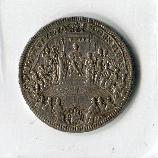 Piastra anno V 1696 in argento, 31,90 gr. Al dritto della piastra: INNOCEN XII PONT MAX AN V. busto a destra con camauro, mozzetta e con stola ornata; al rovescio: LOQVETVR PAC EM GENTIBVS il Papa in concistoro.