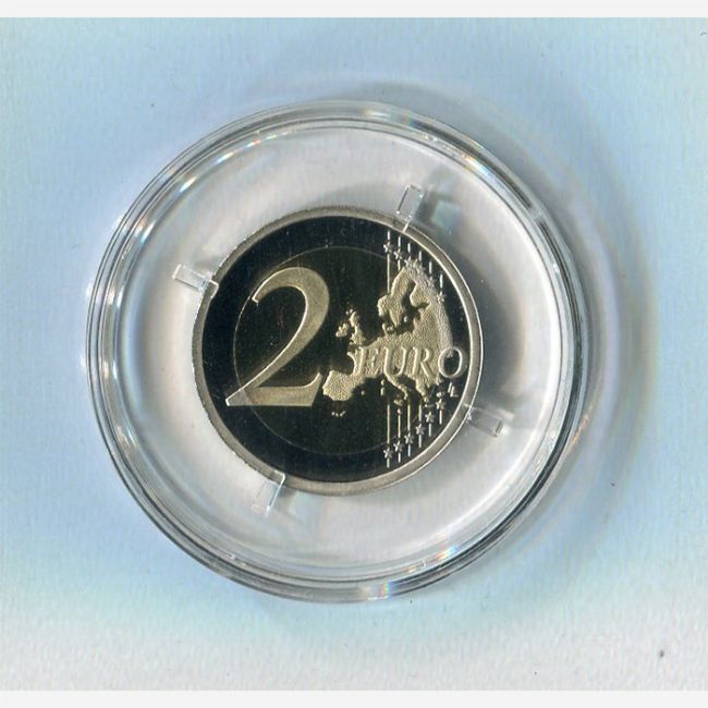 Stato della Città del Vaticano, pontificato di Papa Francesco, moneta commemorativa da 2 euro bimetallico anno 2020 in versione proof - fondo specchio - (FS). La moneta in confezione celebra il centenario del la nascita di San Giovanni Paolo II. Karol Wojtyla nacque il 18 maggio 1920 a Wadowice, in Polonia,fu eletto come sommo Pontefice il 16 ottobre 1978 e governò la chiesa fino alla sua morte avvenuta il 2 aprile 2005. Giovanni Paolo II è stato beatificato da Papa Benedetto XVI il 1° di maggio 2011 e successivamente canonizzato da Papa Francesco il 27 aprile 2014. Al dritto della moneta è rappresentato insieme al ritratto di San Giovanni Paolo II la cattedrale di Wadozice, dove fu battezzato, in alto è raffigurata la stella a otto punte, simbolo della Vergine Maria. Giovanni Paolo II le fù molto devoto e gli dedicò il suo Pontificato. Tiratura 9.000 esemplari.