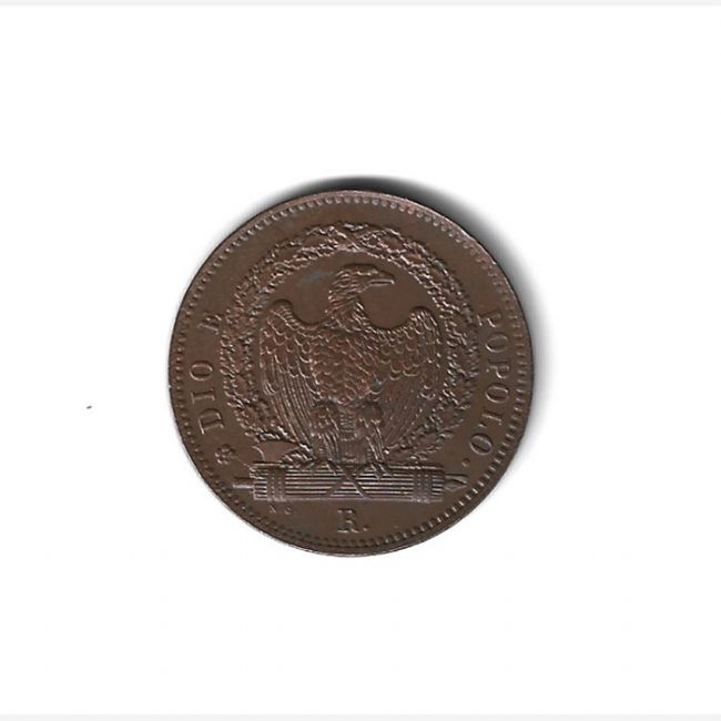 Monete degli Antichi Stati Italiani, seconda Repubblica Romana, 3 baiocchi rame anno 1849, 1 tipo, zecca Roma. Al dritto della moneta "3 baiocchi" con il 3 del valore arrotondato, intorno la scritta "REPUBBLICA ROMANA" entro cerchio perlinato, al rovescio Aquila su fascio entro corona di quercia, intorno la scritta "DIO E POPOLO", il contorno della moneta è liscio. Il 25 novembre il Papa Pio IX si rifugia a Gaeta per i moti popolari scoppiati a Roma, il 9 febbraio viene proclamata la Repubblica Romana, guidata da un triumviro costituito da Giuseppe Mazzini, Aurelio Saffi e Carlo Armellini.
