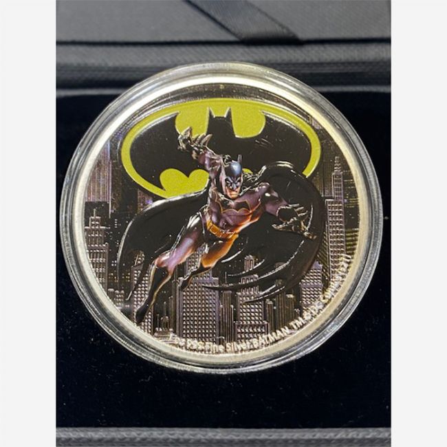 Moneta da 2 dollari BATMAN, anno 2021, in argento, emessa dall'isola Niue. Peso della moneta: 1 oncia in argento (31,10 Gr.) - Argento 999/1000 - Diametro 40 mm - Tiratura: 100 Pezzi - versione FDC -