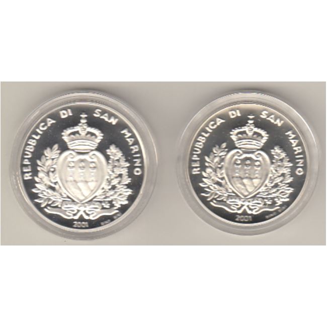 Dittico di monete in argento emesso dalla Repubblica di San Marino nel 2001, le due monete da 10.000 e 5.000 lire furono coniate per commemorare l'addio alla Lira che appunto sarebbe avvenuto l'anno successivo con l'entrata della nuova monetazione in Euro. Al dritto delle monete sono riprodotte in piccolo delle monete che sono state coniate nel tempo da San Marino con sopra una piuma, e nel rovescio il classico Stemma della Repubblica. Le monete sono inserite nel loro astuccio.