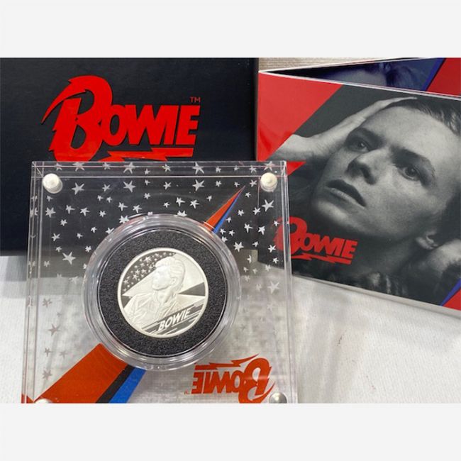 Monete mondiali, Gran Bretagna, The Royal Mint, 1 Puond Half-Ounce Silver proof Coin dedicata a DAVID BOWIE. Moneta in argento 999/1000 - anno 2020 - 1 pound - 15,71 Gr. - 27 MM. - Proof - Limited edition 13.500 - United Kingdom -