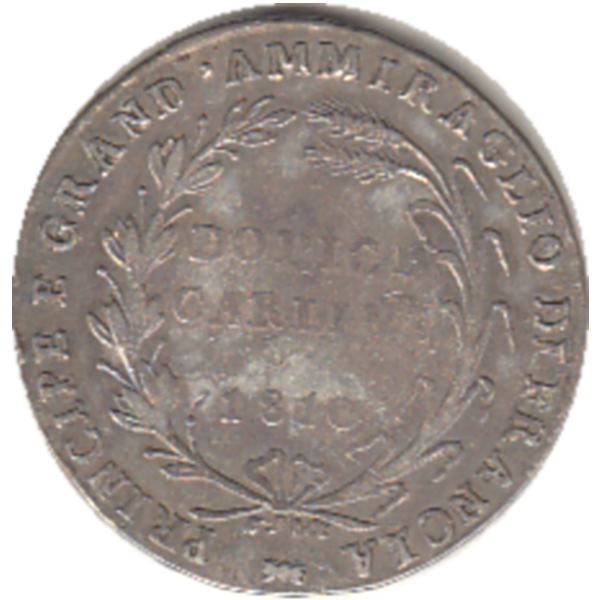 Regno di Napoli, poi delle Due Sicilie, Gioacchino Napoleono Murat, Piastra da 12 carlini in argento del 1810 zecca di emissione Napoli. Al dritto della moneta testa nuda e attorno la scritta GIOACCHINO NAPOLEONE RE DELLE DUE SICILIE, al rovescio la scritta su tre righe DODICI CARLINI 1810 entro corona di rami d'ulivo e grano. Gioacchino Murat, per i suoi brillanti meriti militari e quale sposo di Carolina Bonaparte, sorella di Napoleone, venne nominato Re delle Due Sicilie, il 15 luglio del 1808, in sostituzione di Giuseppe Bonaparte, che doveva assumere la corona di Spagna. Con il nome di Gioacchino Napoleone egli resse il reame fino al ritorno dei Borboni in Napoli (23 maggio 1815). Arrestato a Pizzo di Calabria durante un tentativo di ricoquistare il potere venne sottoposto al processo e fucilato il 13 ottobre del 1815.