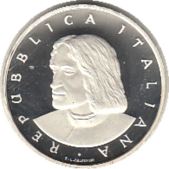Moneta da 500 lire in argento 835/1000 in versione fondo specchio coniata dalla Zecca Poligrafico dello Stato della Repubblica Italiana nel 1998. Al dritto della moneta ritratto di Lorenzo de' Medici con scritta circolare REPUBBLICA ITALIANA, al rovescio il Giglio di Firenze ripreso da un fiorino, la torre del palazzo della Signoria e una allegoria delle arti., attorno il verso PERCHE' LO ESEMPIO AL POPOL MOLTO VALE.. LORENZO DE' MEDICI.