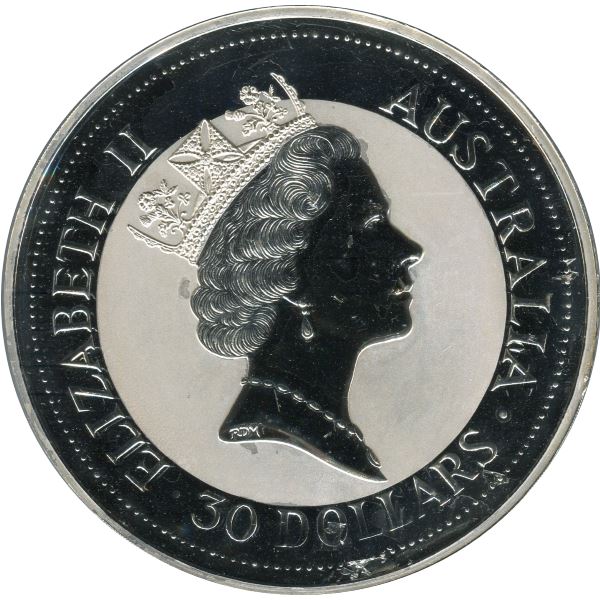 Australia, 30 dollari Kookaburra 1992, moneta da 1 KG in argento .999% PROOF.