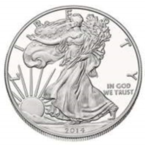 Moneta Dollaro Liberty Eagle. Moneta in Argento coniata dagli Stati Uniti d'America anno 2014, fior di conio. Moneta in Argento (999%) del peso di Grammi 31,103, un'oncia troy.