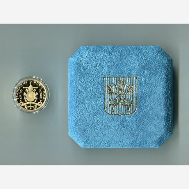 Ufficio filatelico e numismatico della Città del Vaticano, pontificato di Papa Francesco, emissione della moneta da 50 euro in oro fondo specchio (proof) dedicato agli Atti degli Apostoli,il quinto libro del Nuovo Testamento che racconta ciò che accadde dopo la resurrezione di Gesù Cristo,nello specifico la moneta commemora la rappresentazione simbolica dell'Assemblea di Gerusalemme (capitolo 15), che sancisce la definitiva apertura del Vangelo a tutte le genti,secondo la volontà di Gesù. Caratteristiche della moneta: oro 917% versione fondo specchio (proof) - 15 GR. - 28 mm. - 1500 esemplari - moneta in confezione zecca.