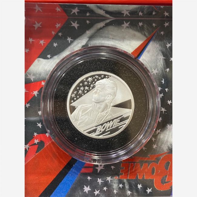Monete mondiali, Gran Bretagna, The Royal Mint, 1 Puond Half-Ounce Silver proof Coin dedicata a DAVID BOWIE. Moneta in argento 999/1000 - anno 2020 - 1 pound - 15,71 Gr. - 27 MM. - Proof - Limited edition 13.500 - United Kingdom -