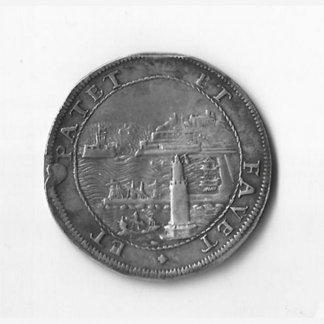 Moneta per gli Antichi Stati Italiani, Tollero in argento di Cosimo III, 1867 Livorno. Al dritto della moneta busto coronato, intorno :COSMVS-III-MAG-DUX-ETRURIAE-VI 1687, al rovescio la raffigurazione del Porto di Livorno, intorno :ET-PATET-ET-FAVET-PORTO-DI-LIVORNO.