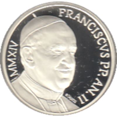 Città del Vaticano, Papa Francesco, emissione numismatica 2014, moneta da 10 euro in argento 925/1000 versione fondo specchio (proof) g.22, dedicata alla XLVIII Giornata Mondiale delle Comunicazioni Sociali, al rovescio della moneta immagine di Papa Francesco, al bordo scritta circolare MISERANDO ATQUE ELIGENDO + MMXIV +. La moneta è inserita nel sua astuccio originale.